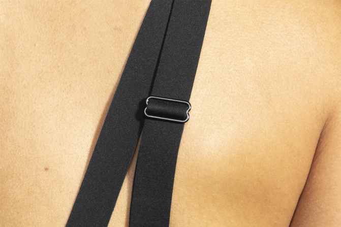 Even with a well-fitted sports bra, some women experience straps that continuously slip off the shoulders. Keep straps in check a racerback or crossback style.